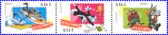 Stamp Day : 2009 - Looney Tunes, complete set of 3 self-adhesive stamps with publicity label in sheetlet of five stamps with the five different labels