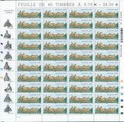 Type Marianne de Cheffer et Marianne de l'Europe; impression en héliogravure - Feuille de 40 timbres avec vignettes
