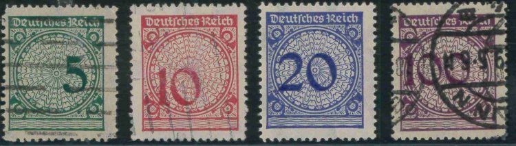 GERMANY ex Mi. 338-43 O - 4 stamps with displaced value