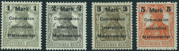 GERMANY MARIENWERDER Sc. 32-35 MH - Complete set of 4 stamps with overprint 'Comission Interalliée Marienwerder' and new values