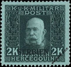 1914/16 : Waagrechter Aufdruck für Serbien - 2 Kr.