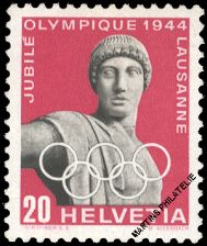 1944 : 50 ans Jeux olympiques - 20 c. rose and grey