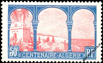 Centenary of the 1st French settlement in Algeria - 50 cts. blue and rose red