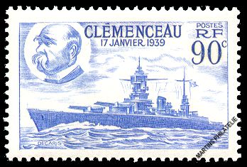 Laying of the keel of the warship 'Clemenceau' - 90 cts. ultramarine