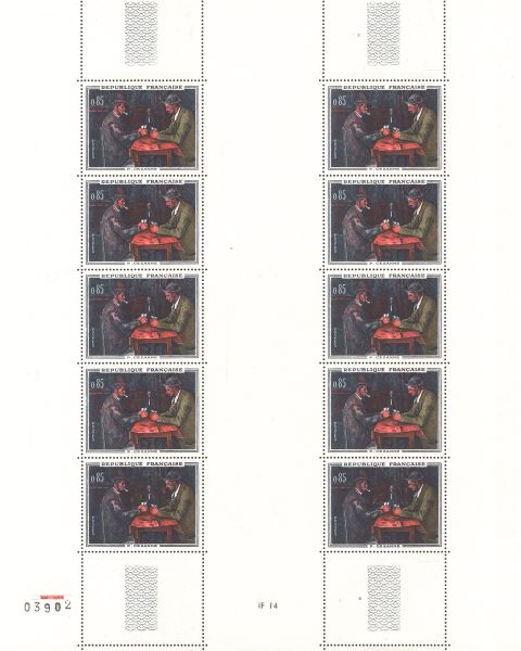 Art : Paintings of Paul Cézanne (1839-1906), The Cardplayers - 0.85 Fr.; sheetlet with 10 stamps