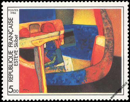Art : Painting by Maurice Estève (1904-2001), 'Skibet' - 5.00 Fr.