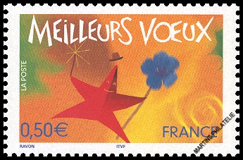Greeting Stamps : 'Meilleurs voeux' - 0.50 €, stamp with normal gum and no phosphor bars