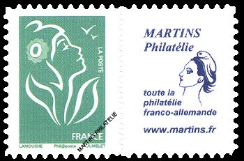 Marianne de Lamouche : without denomination (permanent validity), green, self-adhesive stamp with varnish cover, signature 'phil@poste' and with publicity label, offset printed (photo label not contractual)