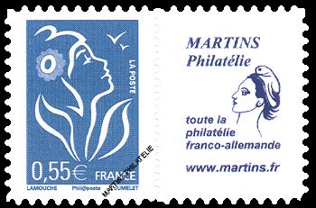 Marianne de Lamouche : 0.55 € blue, self-adhesive stamp with varnish cover, signature 'phil@poste' and with publicity label, offset printed (photo label not contractual)