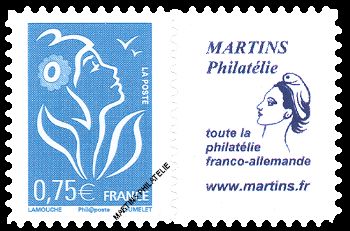 Marianne de Lamouche : 0.75 € slight blue, self-adhesive stamp with varnish cover, signature 'phil@poste' and with publicity label, offset printed (photo label not contractual)
