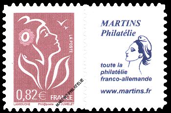 Marianne de Lamouche : 0.82 € rose brown, self-adhesive stamp with varnish cover, signature 'phil@poste' and with publicity label, offset printed (photo label not contractual)