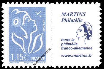 Marianne de Lamouche : 1.15 € pale blue,self-adhesive stamp with varnish cover, signature 'phil@poste' and with publicity label, offset printed (photo label not contractual)