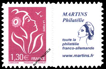 Marianne de Lamouche : 1.30 € lilac carmine,self-adhesive stamp with varnish cover, signature 'phil@poste' and with publicity label, offset printed (photo label not contractual)