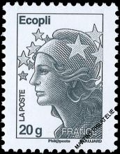 Marianne et l'Europe : Tarif économique pour lettre 20 gr. France, gris; papier normal (feuille de 100)