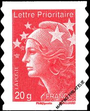Marianne and Europe : Priority mail 20 gr. France, red; selfadhesive stamp