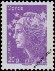 Marianne und Europa : Standardtarif 20 gr. weltweit, violett; glänzendes Papier aus Kleinbogen