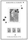 2012 : Marianne et l'Europe : 4 timbres à 0.01 € en Mini-Feuillet avec bord dorés