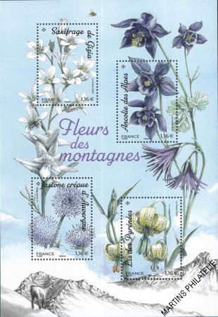 2023 : Montain Flowers - Sheetlet with 4 stamps (click on "see also" for sheetlet in folder)
