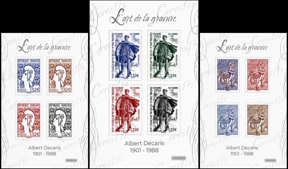 2026 : The Art of Line-Engrave-Printings, Albert Decaris - Set of 3 Sheetlets
