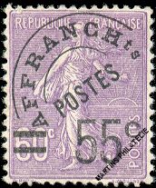 Semeuse Type 'linierter Grund' - 55 auf 60 cts. violett - Aufdruck 'Affranchits Poste'