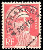 Type Marianne de Gandon : 15 Fr. red - overprinted 'Affranchits Poste'