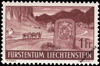 Frontière and vue du Flaschnerberg - 1 F. brown-lilac