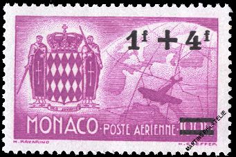 1942 : Arms and aeroplane and globe - 1 + 4 F. on 100 F. rose-lilac