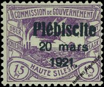 1921 : Coal-mine in Silesia - 15 Pfg. with overprint "Plébiscite 20 mars 1921"