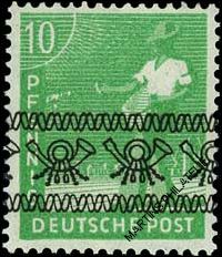 Worker - 10 Pfg. with overprint band "Posthorn"